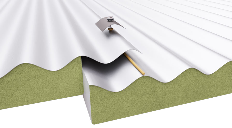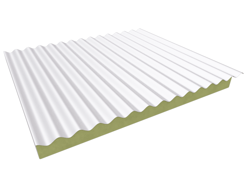 Panel metálico fabricado en proceso de línea continua, con cara superior de conformado tipo SINUSOIDAL en láminas de acero prepintado o cincalum y, cara inferior en foil de polipropileno de alta resistencia. Utilizable en cubiertas y revestimientos de muros de edificaciones industriales, comerciales y residenciales. Pendiente mínima recomendada del 5%.